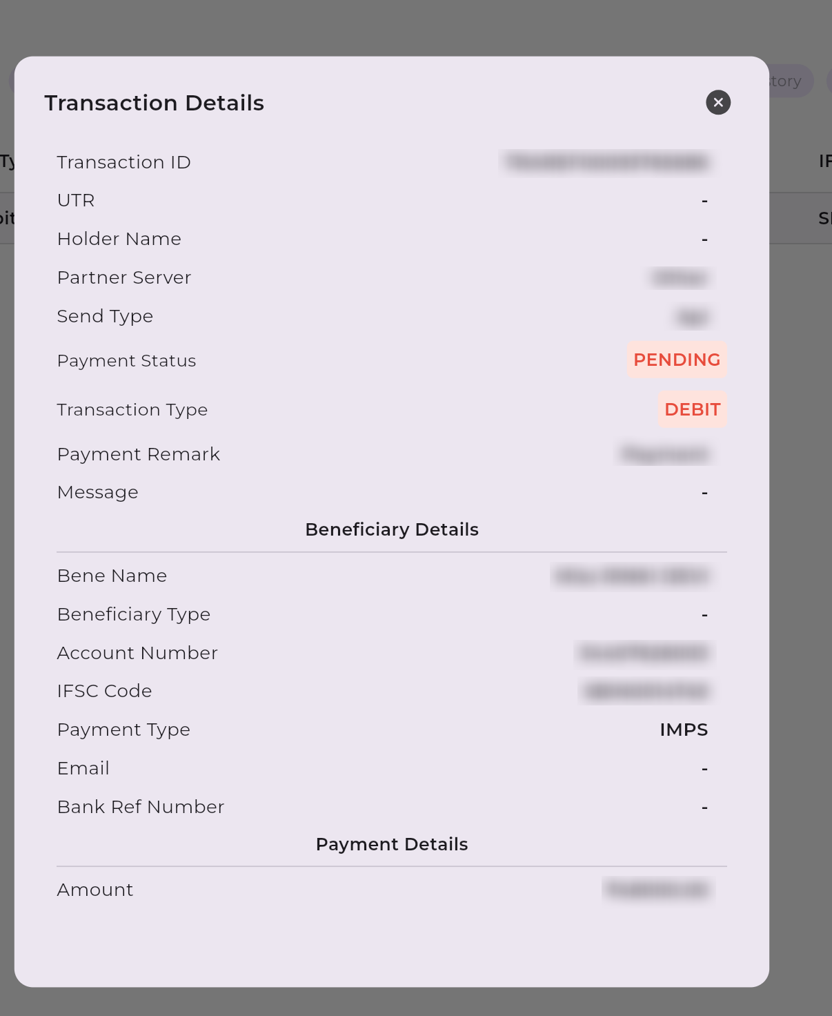 For UPI and IMPS payouts (real-time payment modes), a transaction may occasionally show a Pending status. This occurs when the beneficiary bank's server does not respond within the initial 30-second processing window.
